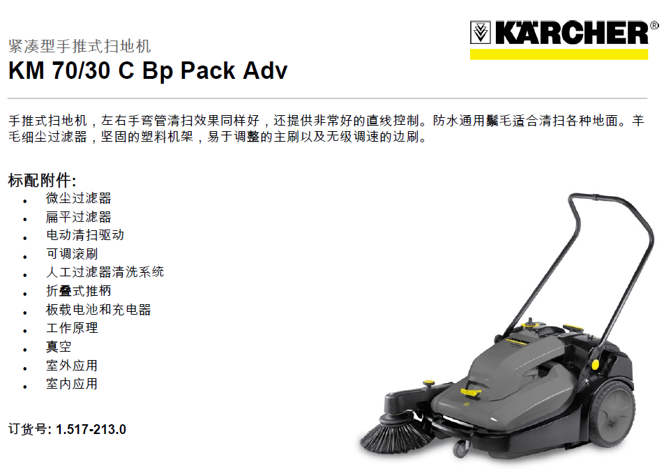 凱馳手推式掃地車KM70/30 C Bp